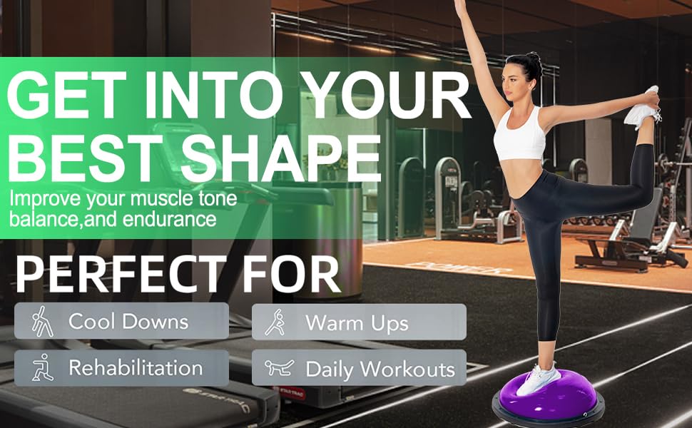 ANTI-SLIP AND STABLE: Zeatly half round balance ball has a 8-layer circle textured surface that is non-slip and easy to clean. 8 anti-skid gaskets on bottom enhances the stability and safety during use.