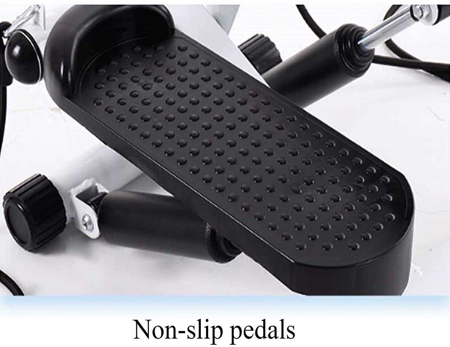 ADJUSTABLE HEIGHT – Use the adjustment spin lever to adjust your desired step height before you start working out on your portable stepper. Different levels will help target your calf muscles or thighs to get the results you want. PREMIUM DESIGN AND QUALITY Textured non-slip pedals and wide bases provide steady, quiet and smooth workout. Wider foot pedals and stronger steel material give the users confidence to workout.
