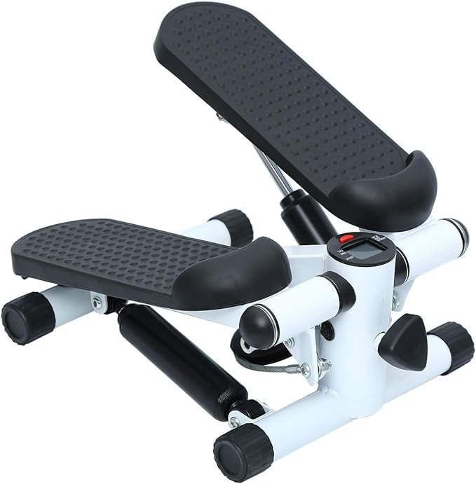 Portable Exercise Stepper provides a natural step action workout that pedals up and down, which helps tone your glutes and thigh muscles. With anti-slip, oversize footplates and LCD display console are designed to help you maximize the efficiency of your workout.Height adjustment lever adjusts the step motion height for targeting workout, and exercise bands work arms, chest, back, and shoulders for total body workout in the comfort of home. Multi-mode LCD aerobic trainer screen allows you to monitor your progress and help maintain high level of exercise that is good for any fitness level.