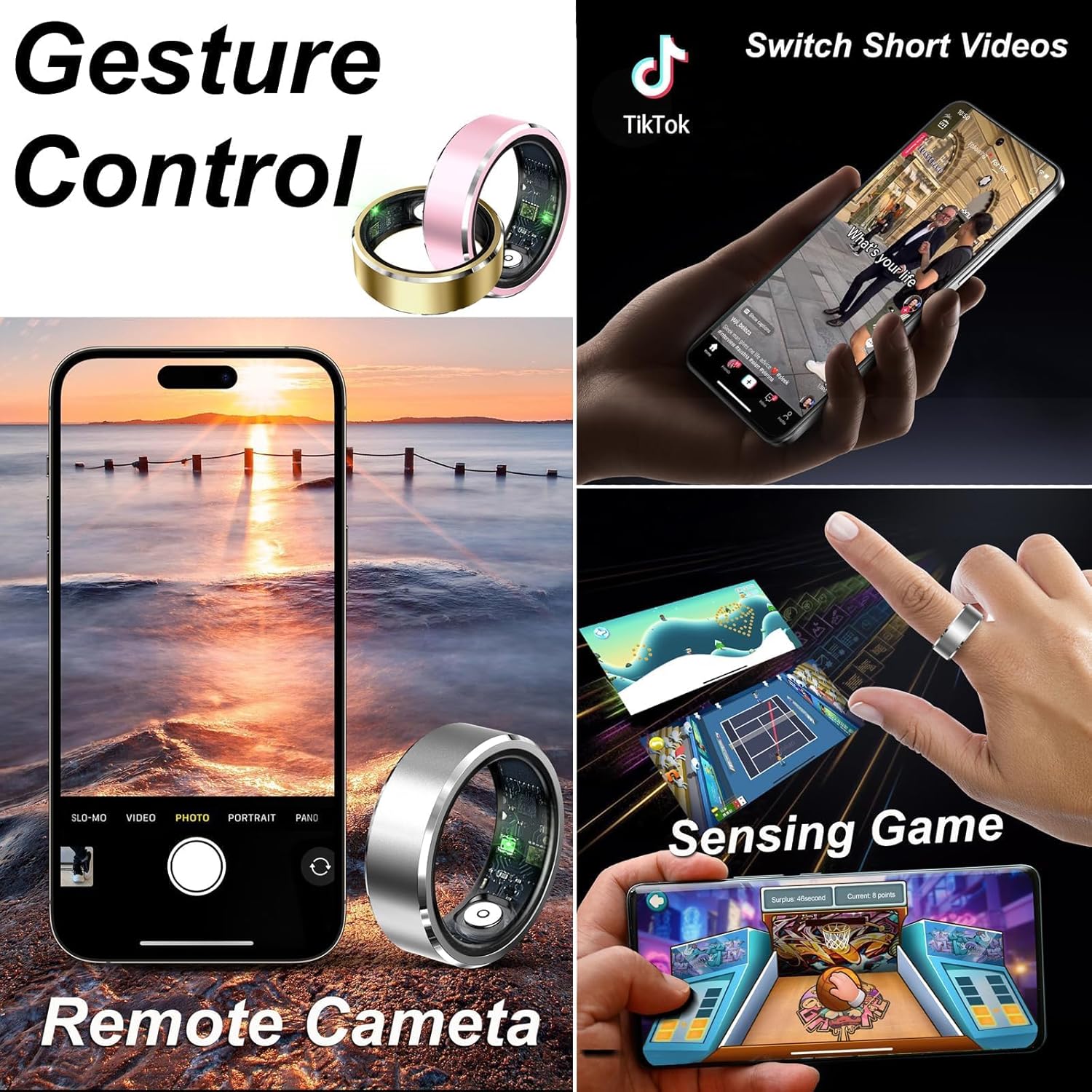 Gesture Control: This ring supports gesture interaction, you can use it to take phone’s photos remotely, switch short videos, pause or play music. Free your hands and give you convenience in daily life.
