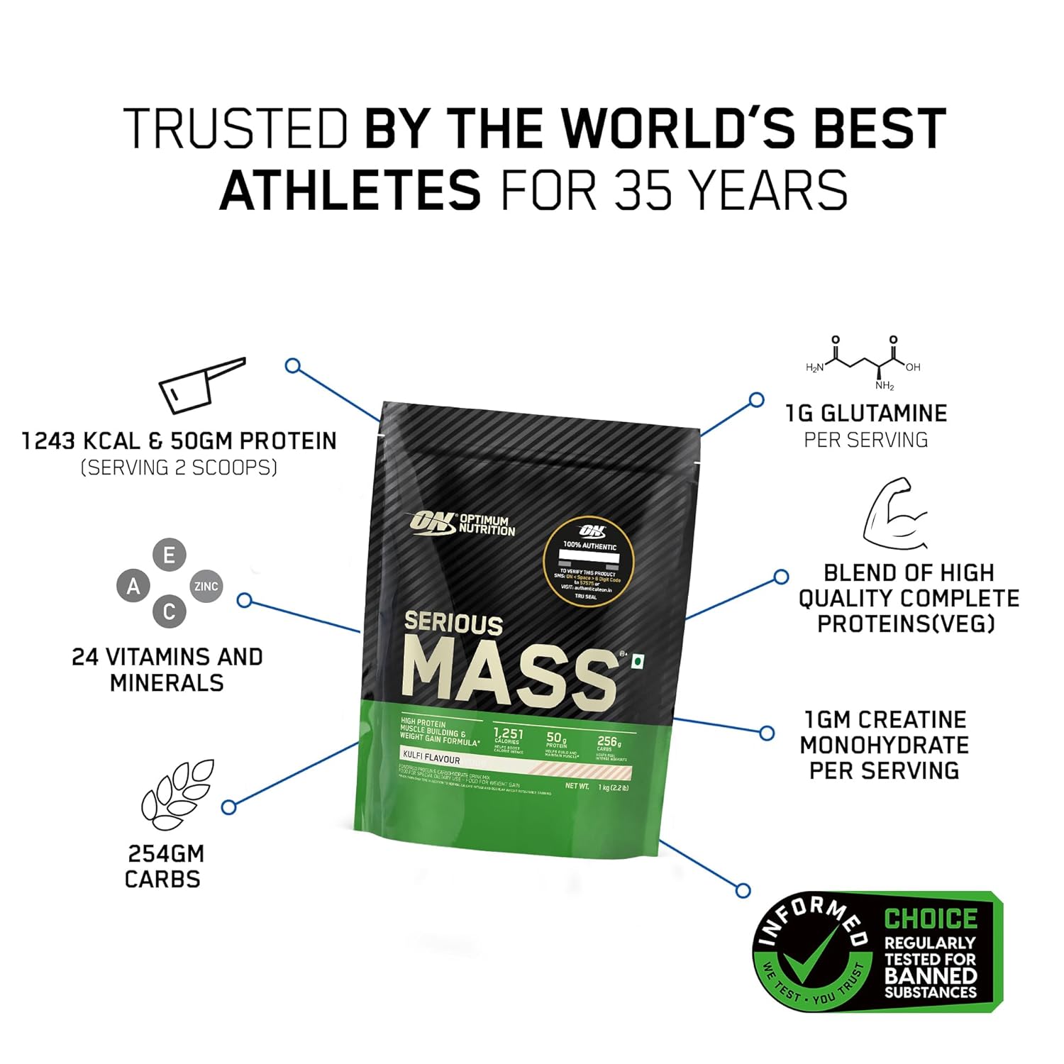 Be the first to review “Optimum Nutrition (ON) Serious Mass High Protein Weight Gain Powder(Veg)- 1 kg (Kulfi) with 23+ Vitamins-Minerals, Glutamine & 3g Creatine.”