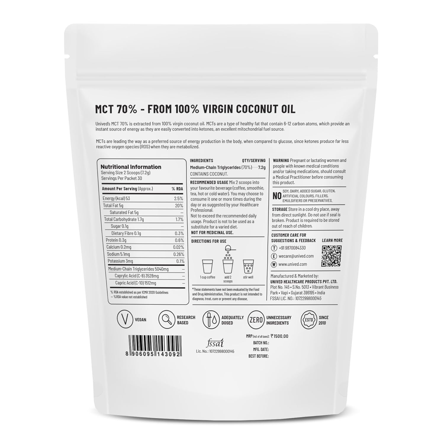 Be the first to review “Unived MCT 70% | Medium Chain Triglyceride Oil Powder | Clean Energy Fuel | Pure MCT 5g with C-8: 3528mg & C-10: 1512mg in a 70:30 ratio | Keto Friendly | 30 Servings”