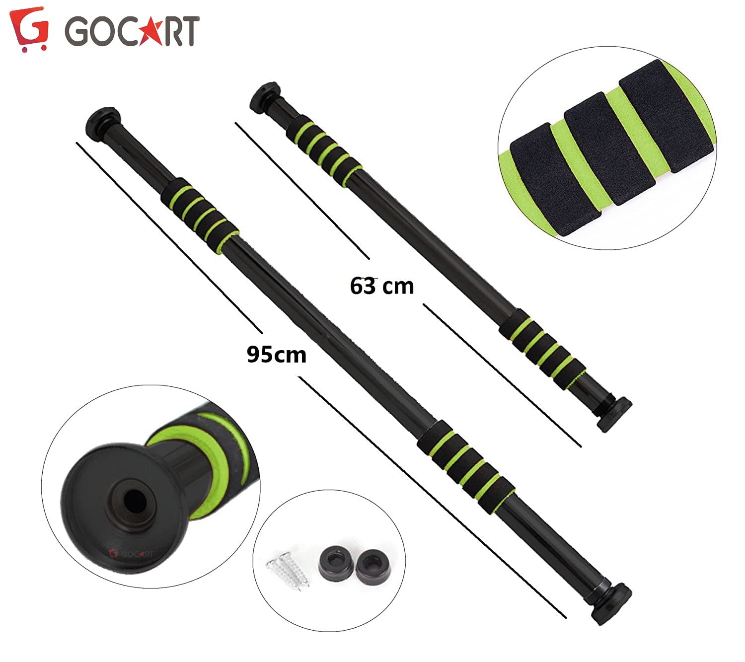 GOCART WITH G LOGO Nonslip Carbon Steel Doorway Gym Bar, Pull-up Bar for Home, Mountable, Adjustable In length, (Black, Size 63-95) (Black)