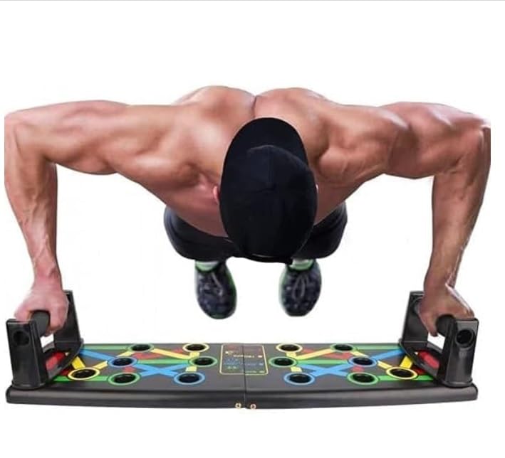 15-in-1 Push-Up Board – Ultimate Home Workout Solution Take your home workouts to the next level with the 15-in-1 Push-Up Board, a versatile fitness tool designed to help you build strength and sculpt your upper body. This innovative push-up board features a unique color-coded system that targets specific muscle groups, including the chest, back, shoulders, and triceps. Key Features: ✅ 15-in-1 Multi-Function Design – Easily adjust your hand positions using the color-coded slots to activate different muscles and maximize results. ✅ Muscle Targeting System – Blue – Chest Red – Shoulders Yellow – Triceps Green – Back ✅ Durable & Sturdy Construction – Made from high-quality, non-slip ABS plastic, ensuring stability and safety during workouts. ✅ Portable & Lightweight – The compact, foldable design allows you to take it anywhere, making it perfect for home, office, or travel workouts. ✅ Non-Slip Handles – Ergonomic grip handles provide comfort and reduce strain on the wrists. ✅ Easy to Use – Just plug and press your handles into the designated slots to instantly switch up your workout routine. Benefits: ✔ Builds upper body strength and endurance ✔ Engages multiple muscle groups for a full-body workout ✔ Improves posture and core stability ✔ Suitable for beginners and advanced fitness enthusiasts Whether you are a beginner or a seasoned fitness lover, the 15-in-1 Push-Up Board is your go-to home workout companion, helping you achieve your fitness goals with ease and efficiency.
