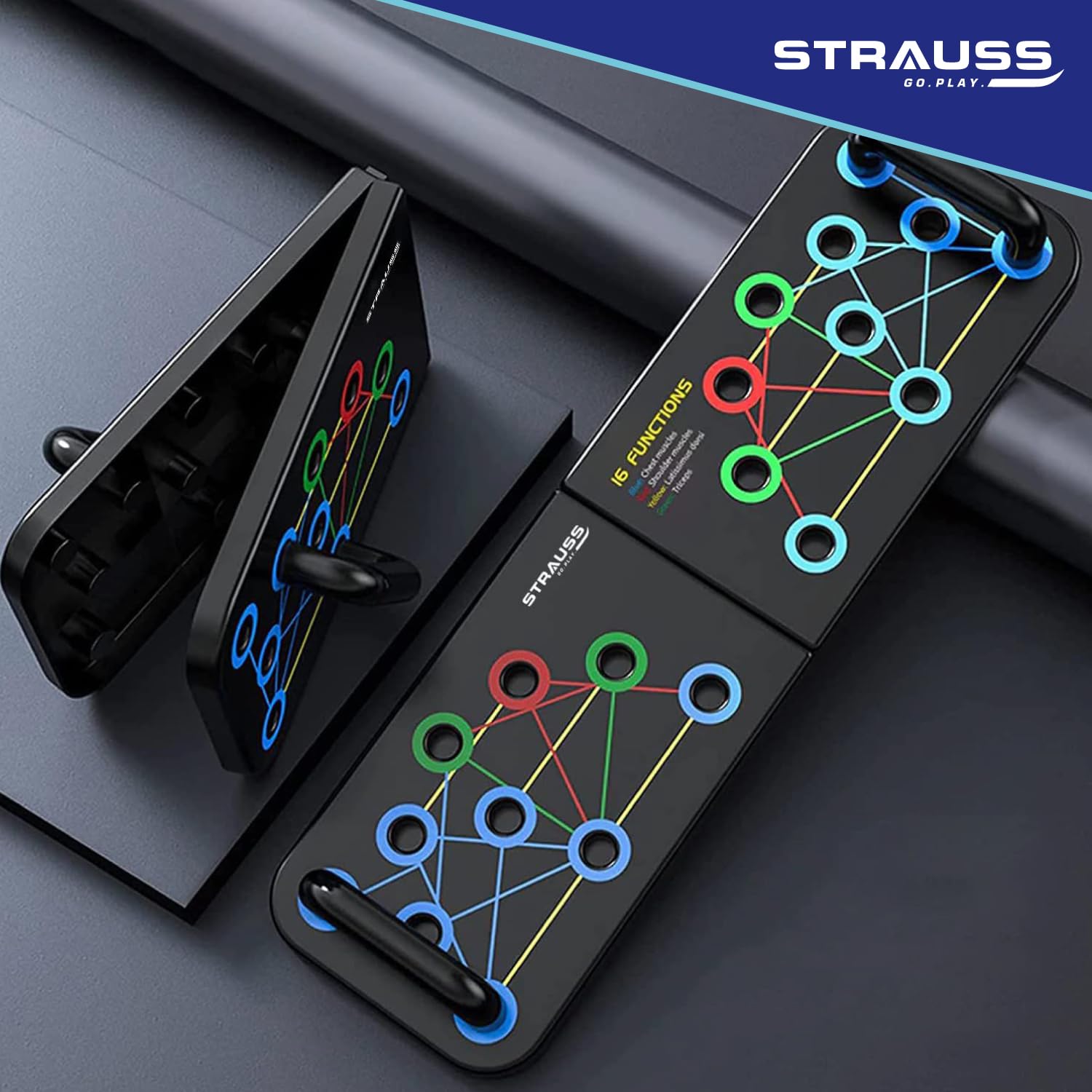 Be the first to review “Strauss Multipurpose (16 in 1) function Push Up Board/Bars/Stand with Multiple Modes | Calisthenics,Gym and Excersing Equipment | Chest,Muscle,Triceps,Shoulders Workout | Both for Men and Women, Black”