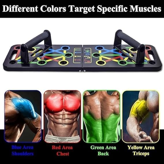 Transform your fitness routine with this versatile 15-in-1 pushup board system designed for comprehensive upper body training. The colour-coded board features multiple grip positions to target different muscle groups effectively, making it perfect for chest, shoulder, and triceps workouts. The package includes two finger grippers for enhanced grip strength and forearm development, along with a resistance band for versatile training options. This complete workout solution is suitable for both men and women, whether exercising at home or in the gym. The sturdy construction ensures stability during exercises, while the compact design makes it easy to store. The numbered positions help you track your workout progression and maintain proper form. Ideal for beginners to advanced fitness enthusiasts looking to diversify their strength training routine. The non-slip surface provides secure grip during intense workouts, letting you focus on your form and results.