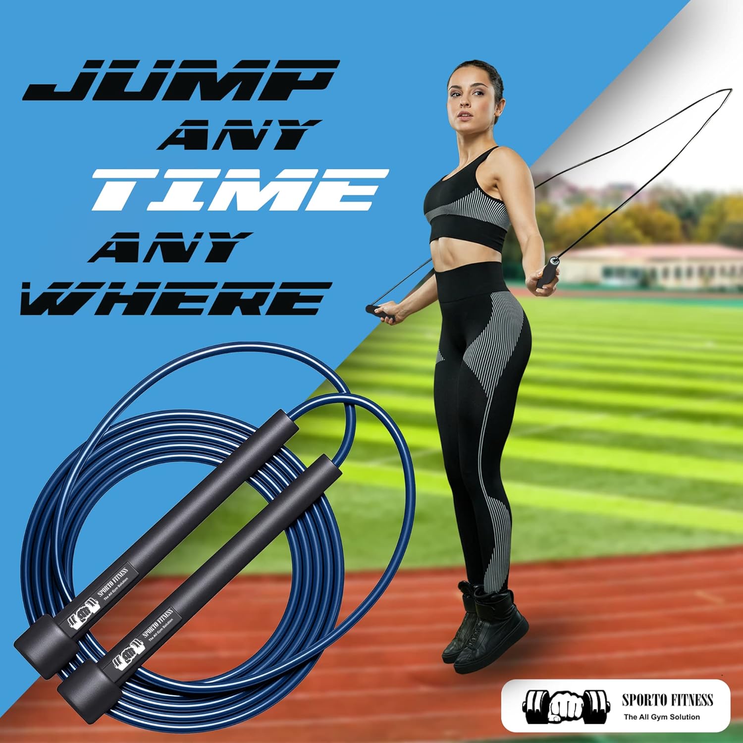 Be the first to review “Sporto Fitness Skipping Rope S-10 Rope for Men, Women & Children | Workout & Weight loss | Best for Home gym|Jumping Rope for Exercise, Premium and tangle free Jumping rope (BLACK BLUE)”