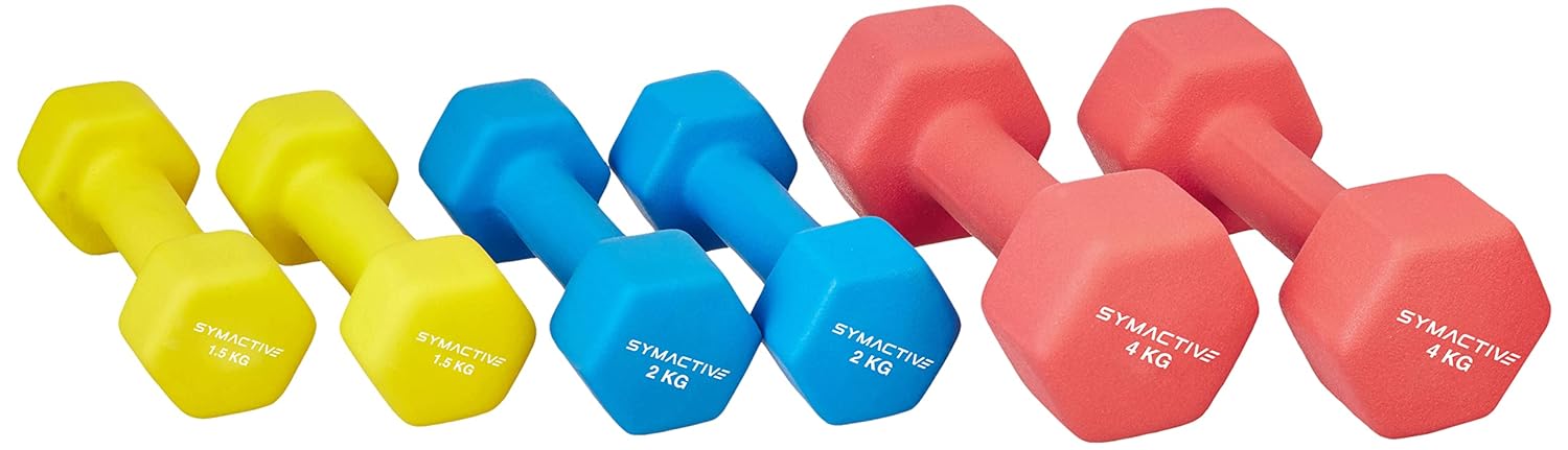 Be the first to review “Amazon Brand – Symactive Neoprene Coated Dumbbell Combo with Stand 15 Kg, Set of 2 (1.5 Kg, 2 Kg, 4 Kg)”
