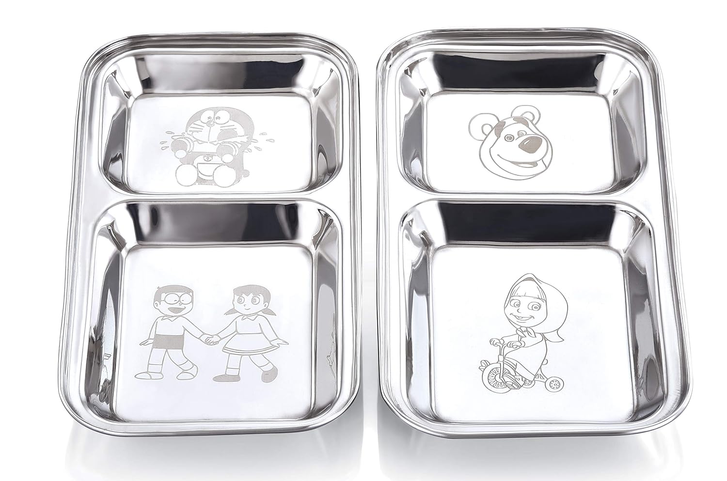 Be the first to review “Expresso Stainless Steel | Cartoon Design | Rectangle Shape Dinner Plate with 2 Sections Divided Mess Trays for Kids Lunch, Camping & Every Day Use Kitchenware, Set of 2 Pcs”