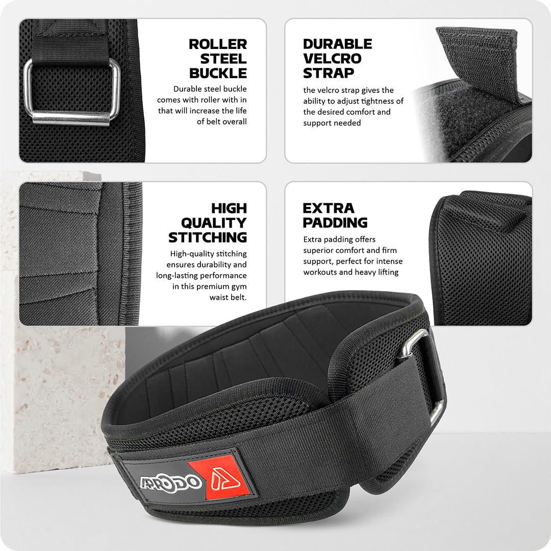 APRODO Our weight lifting belt is made of premium nylon and is intended to last for a long time, even with frequent use by athletes. Comfort, durability, and a personalized fit are further guaranteed with the high-quality steel buckle and Hook & Loop Velcro System.