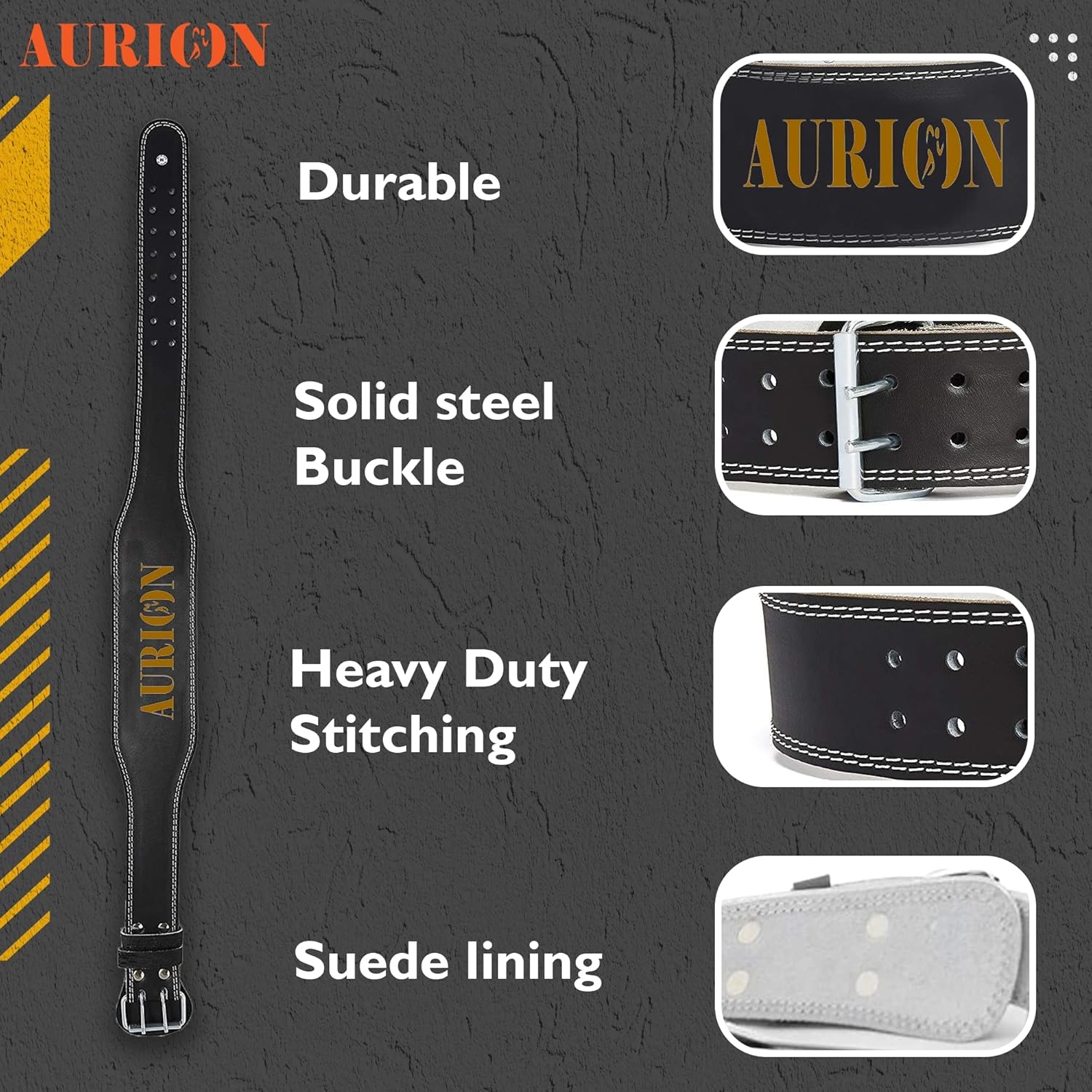 When quality meets comfort: All Aurion weight lifting belts measure 4 inches and have just about the right size so as facilitate your training to the fullest. The double reinforced stitching, riveting underpinning and ultra resilient oil leather craftsmanship, guarantee that this waist belt can withstand some heavy duty use.