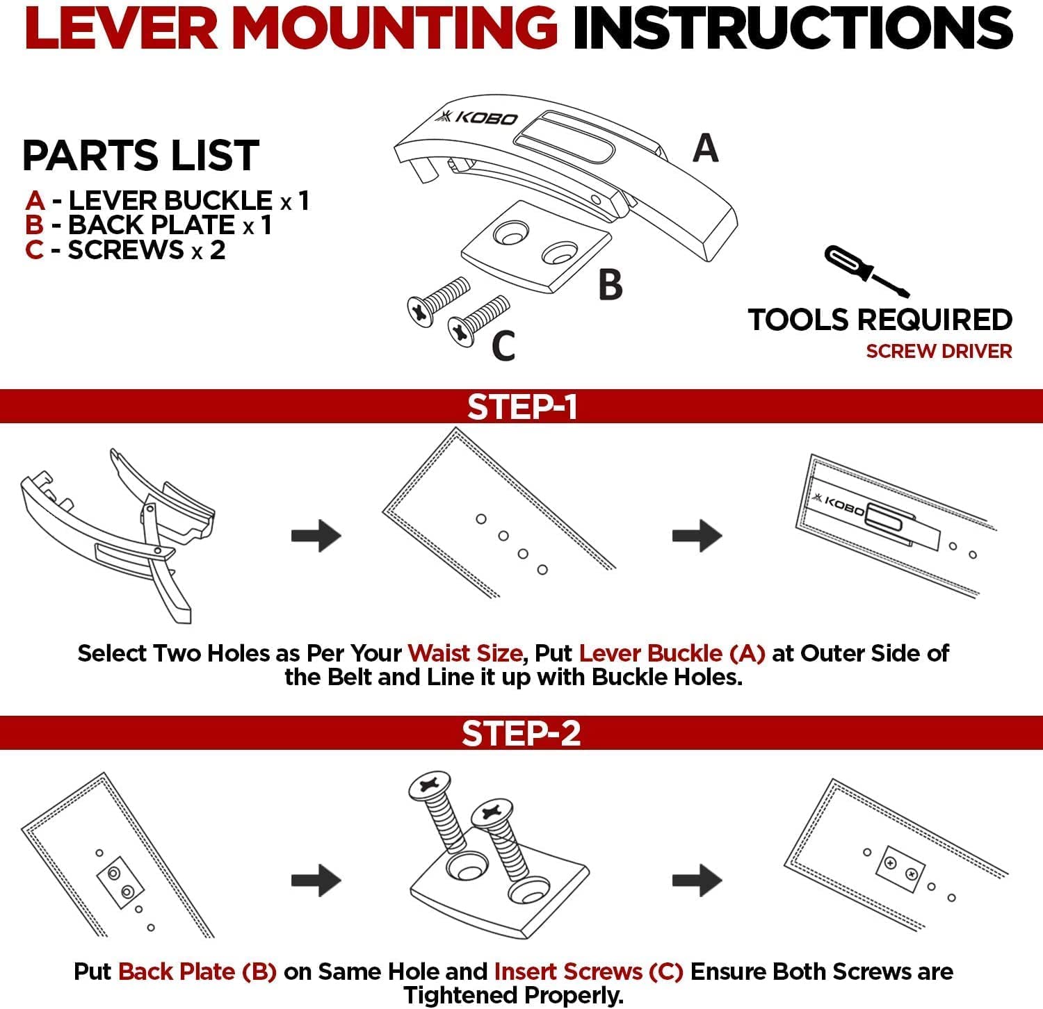 Featuring a gliding lever, providing the adjustability of a prong belt with the ease and tightness of a lever belt. Ideal for sizing up or down whenever you need during training sessions and competitions. Designed through collaboration with world class athletes, coaches, and health professionals. Black oiled leather finish with a red suede interior. 13mm thickness and 10cm in width. Our belts are made to ipf specs and give excellent support when lifting. The new Kobo powerlifting belt has been carefully designed to maximize performance, durability, safety and comfort. The 13mm thickness provides the best support and comfort a power belt can offer. It conforms to your body to stabilize support and lets you take your power training to the next level. Add to this our double stitching construction and you get a solid, durable power belt. Premium quality top of the line 4-inch wide 13 mm thick lever belt.